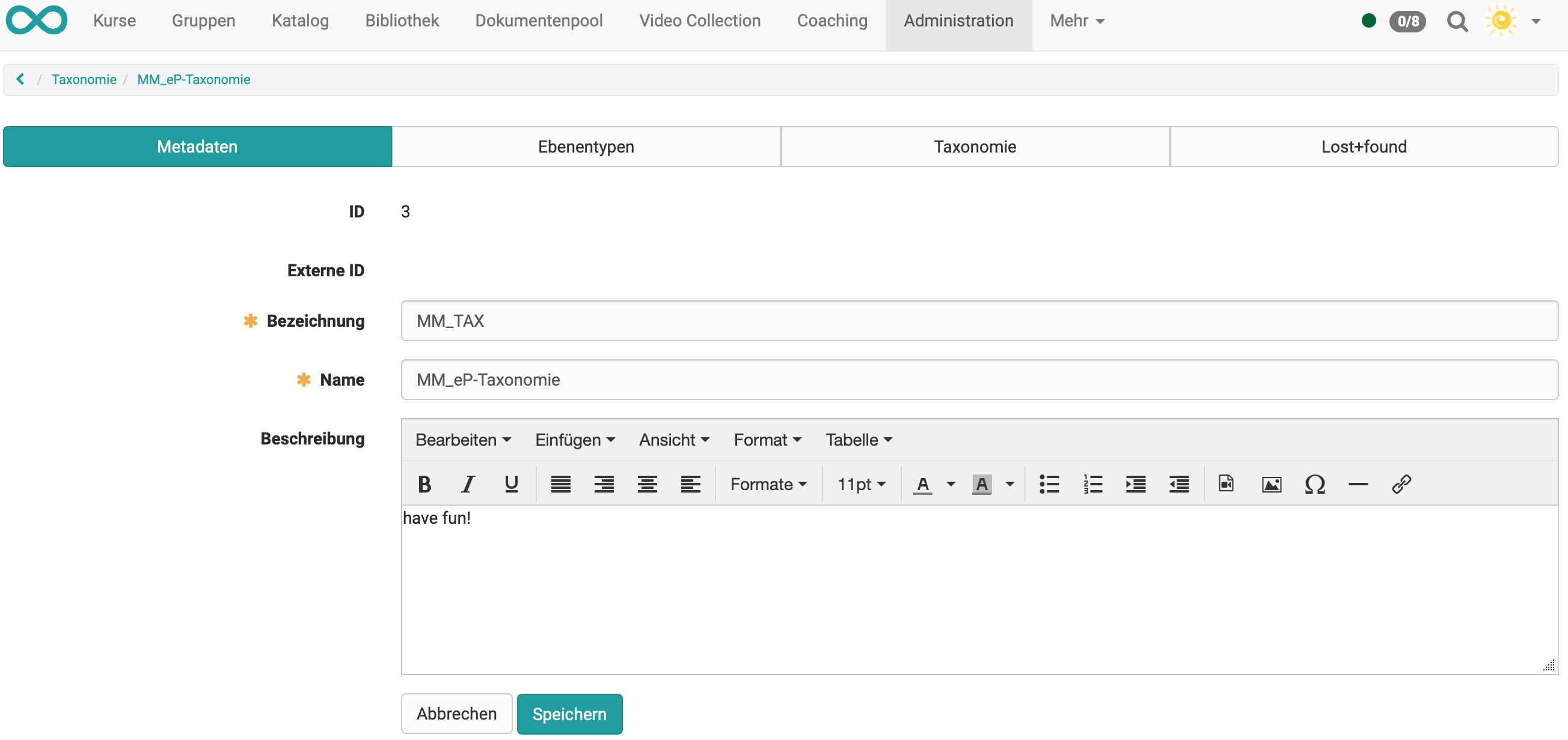 - Beschreibung: Beschreibung der Taxonomieebene. Wird im Katalog unter der Ebene angezeigt.