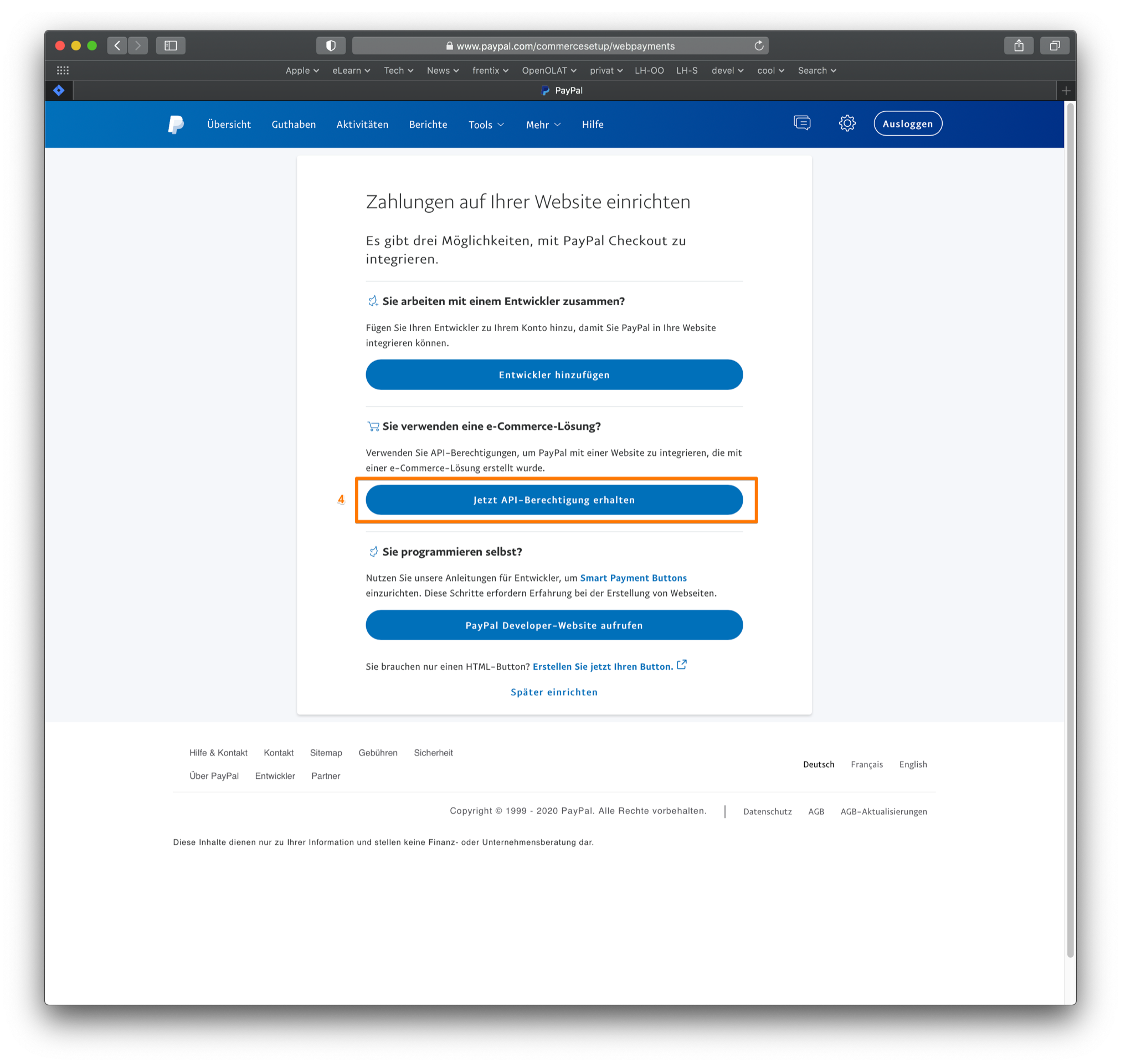 Schritt 2: klicken Sie auf den Button "Jetzt API-Berechtigung erhalten" (4).
