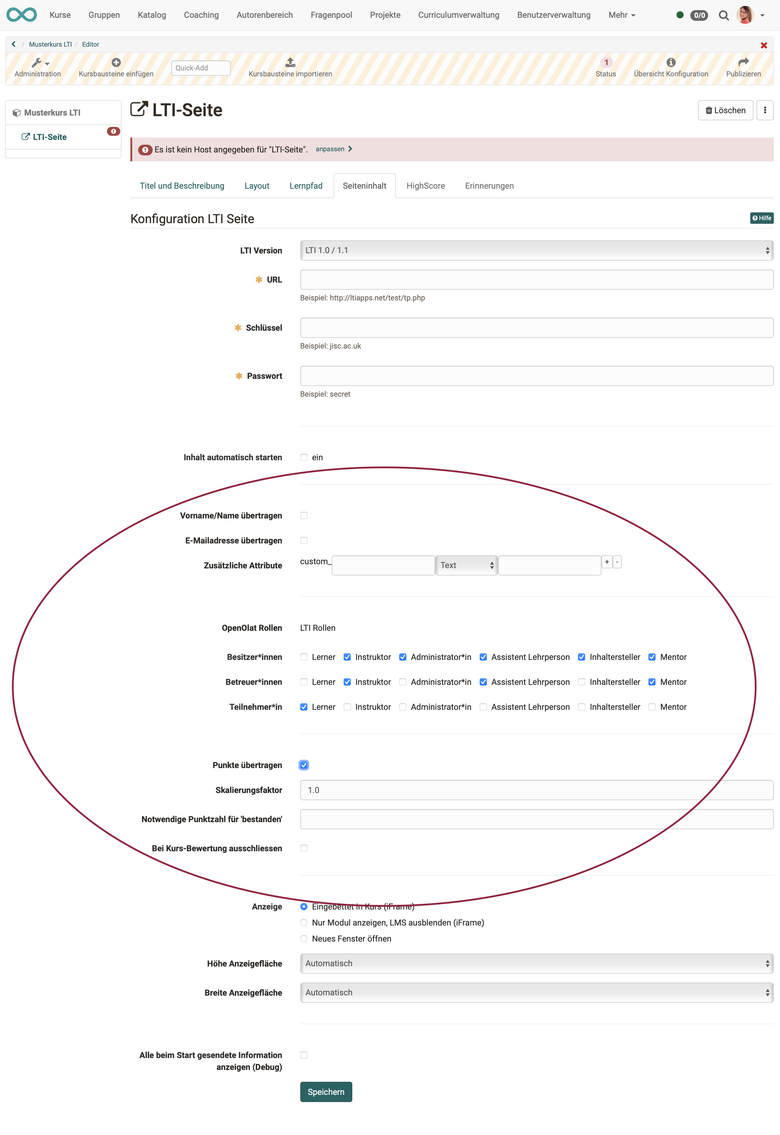 - LTI-Freigabe des Kurses in OpenOlat