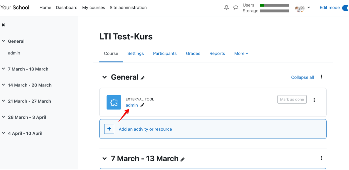Administration > Externe Werkzeuge > LTI 1.3