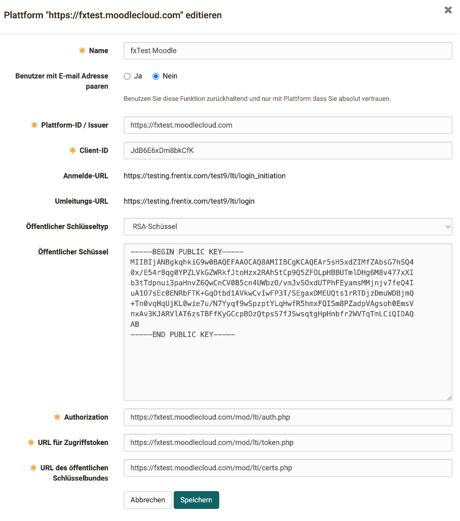 | Client-ID | Client ID aus dem Dialog "Tool configuration details" in Moodle |