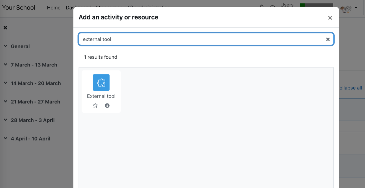 1. Setup "External Tool" in Moodle