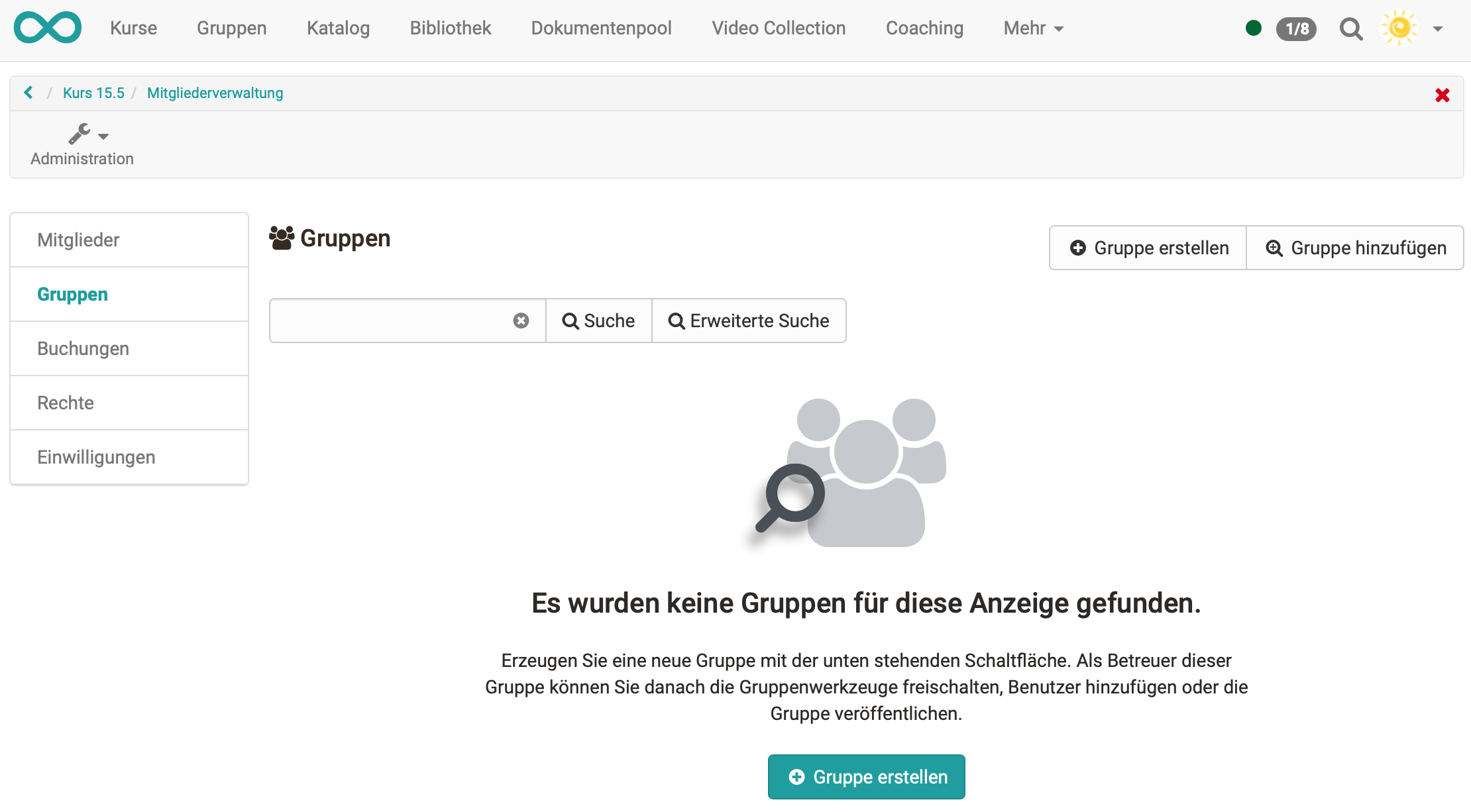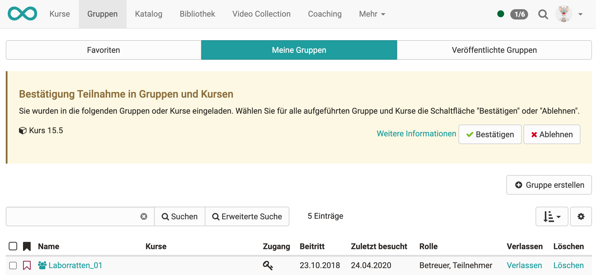 - Anzeige ausstehender Bestätigungen für Kurs- und Gruppenmitgliedschaften im Gruppenbereich (Screenshot)