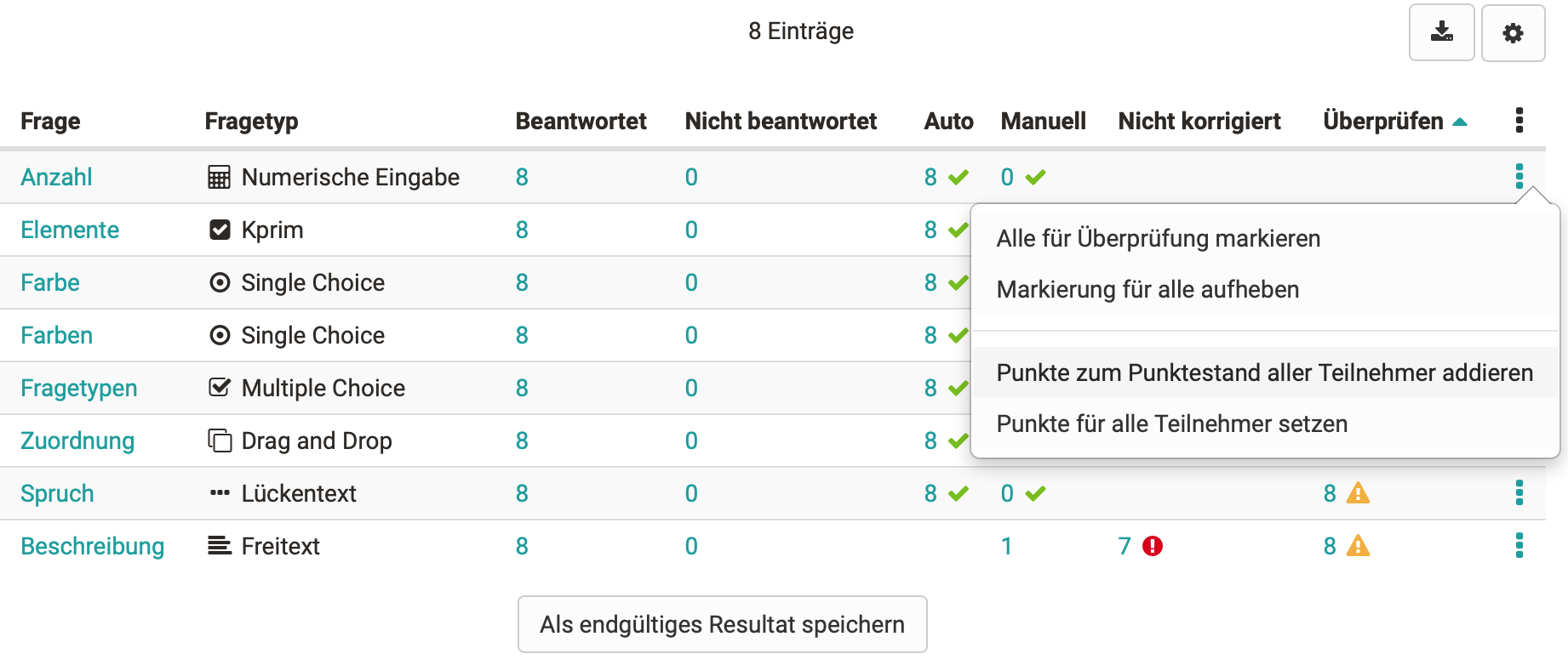 Die Maximalpunktzahl der Frage kann dabei nicht überschritten werden.