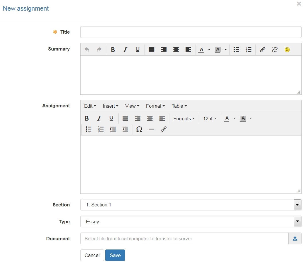 Create and edit assignments - Essay