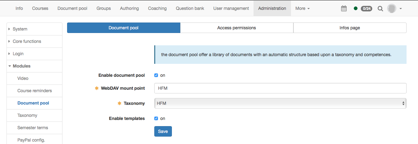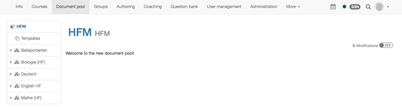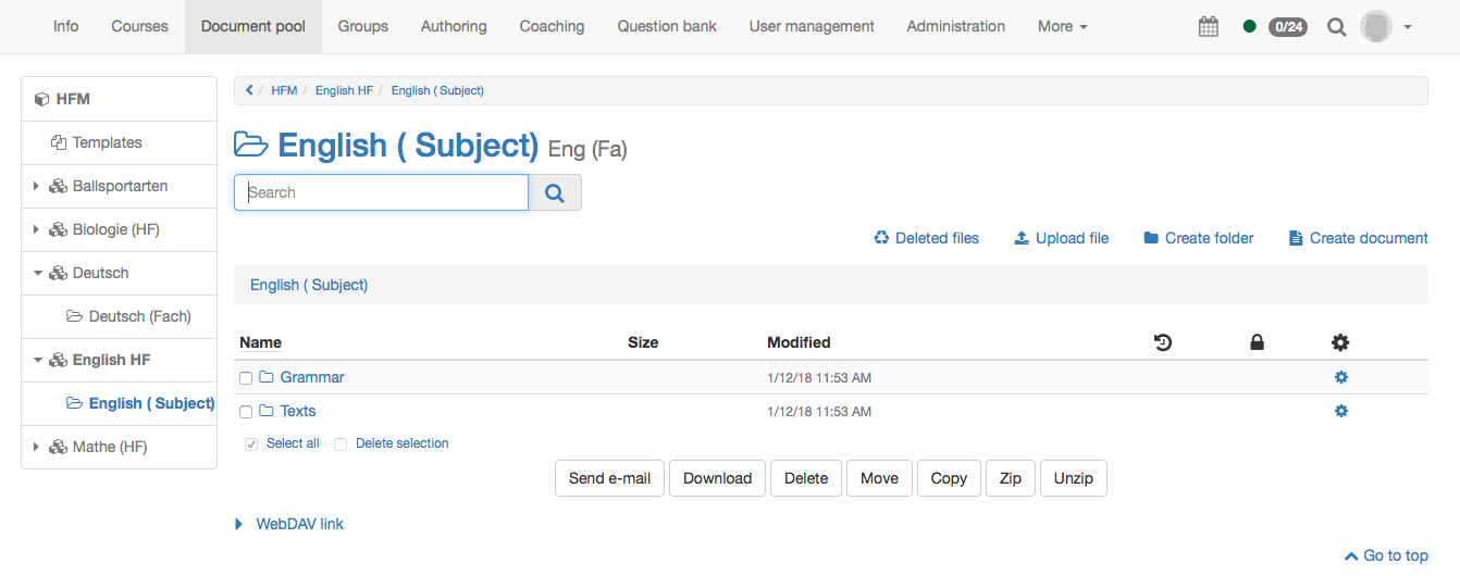 The document pool can be activated for all OpenOlat users, also for learners.